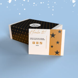 259 Din – 575 DinPaket sadrži kutiju, rukav, zahvalnicu i stiker. Kutije proizvedene u Italiji su izrađene od čvrstog, otpornog materijala koji će pružiti sigurnost i zaštitu Vašeg proizvoda. Takođe, naše kutije su eko friendly, napravljene od recikliranih materijala i materijala koji su biorazgradivi. Paketi koje imamo u ponudi: Kutija S: 21x17x5cm; samolepljivi rukav 49x19cm; zahvalnica 14x11cm; stiker okrugli […]